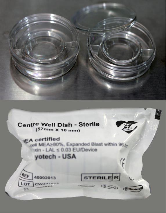 The Centre well Dish with two compartment is a multipurpose dish for Fertilization, Cryo Procedures, Embryo Culture and Embryo Transfer.